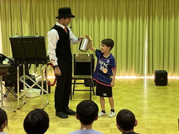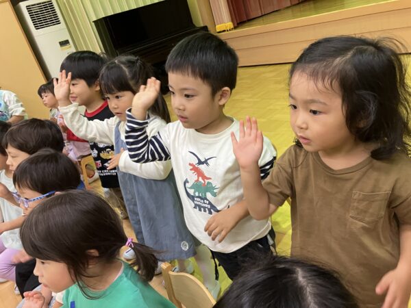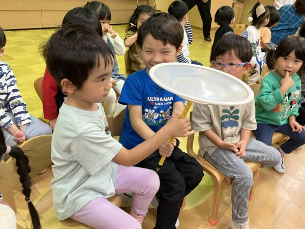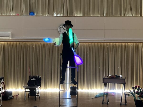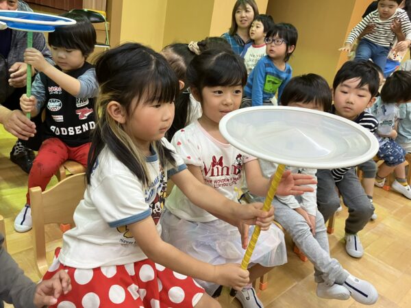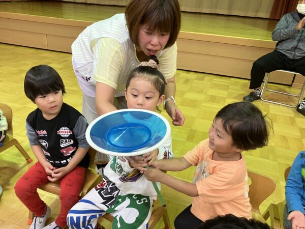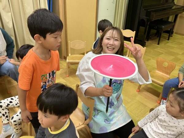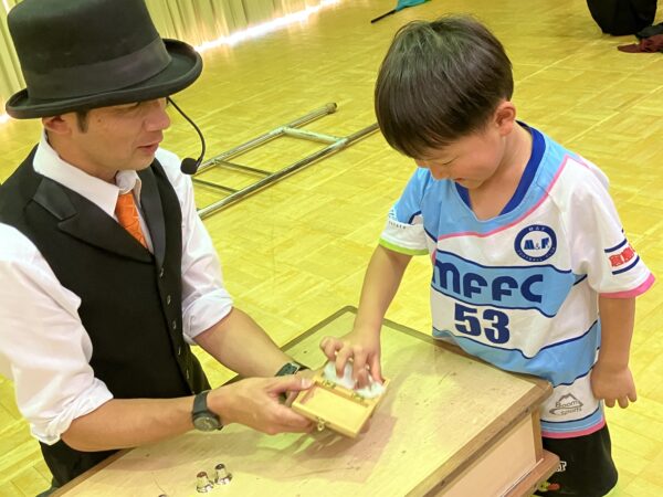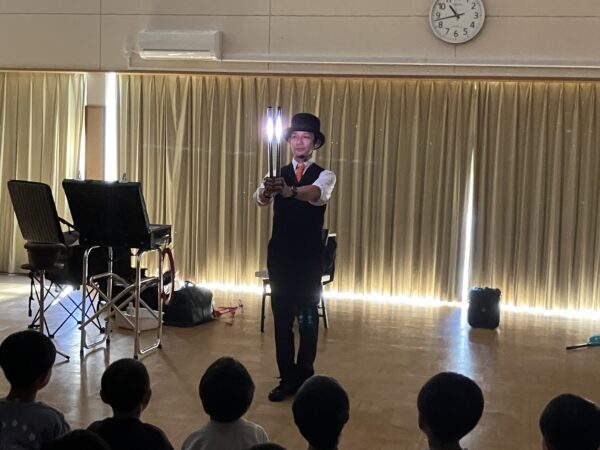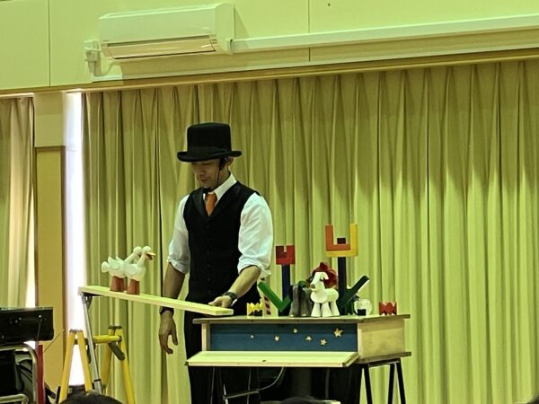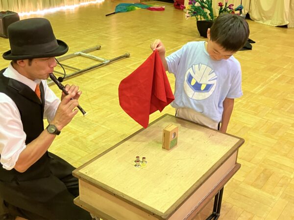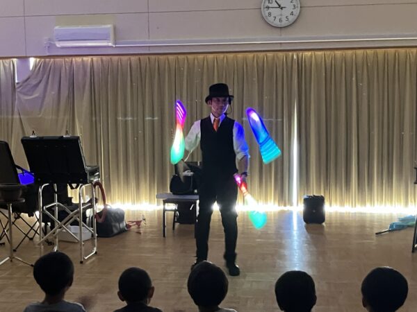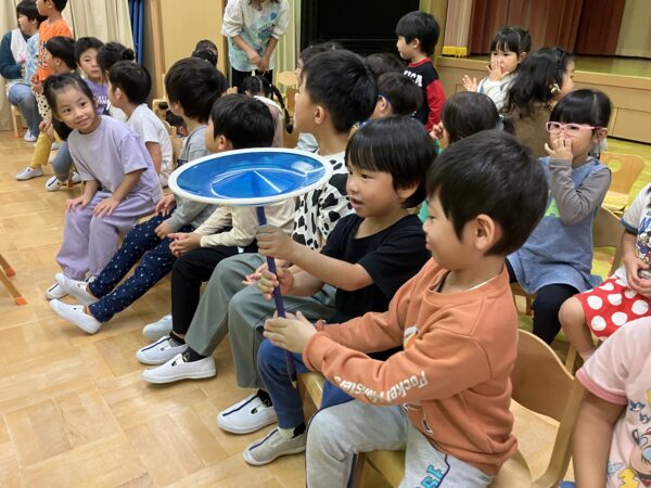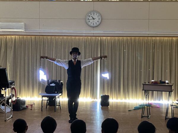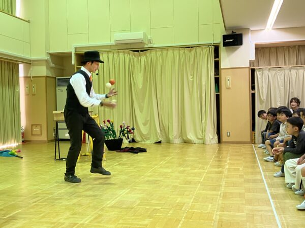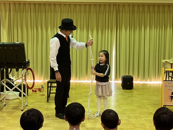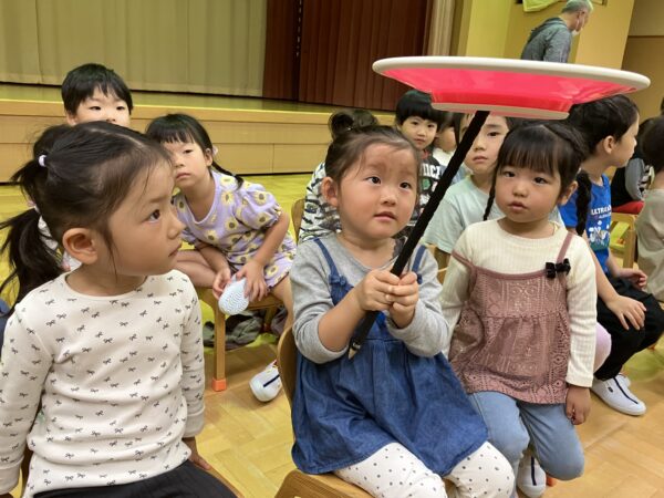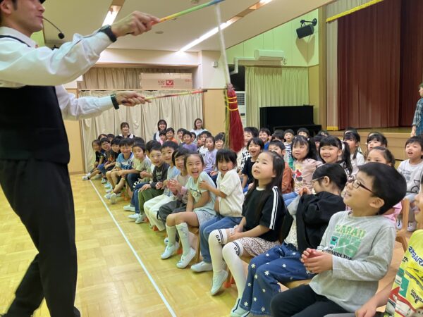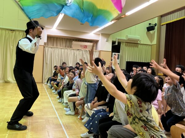 今日は子どもたちが楽しみに待っていたクロさんによるマジックショーでした。『クロさーん!!』と呼ぶ声と共に登場し、たくさんのマジックやショーを見せてくれました!