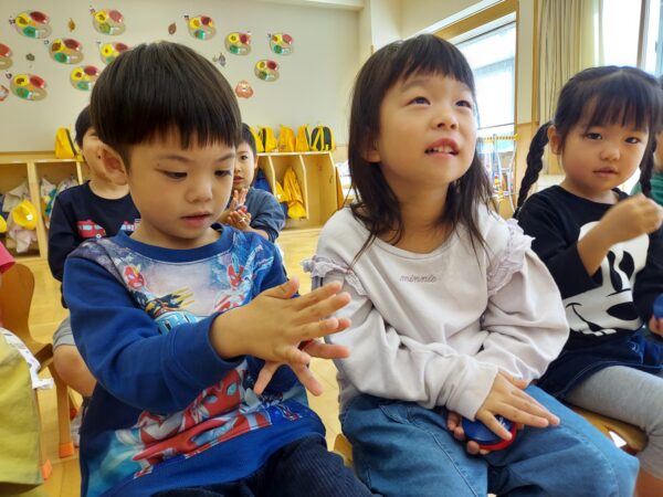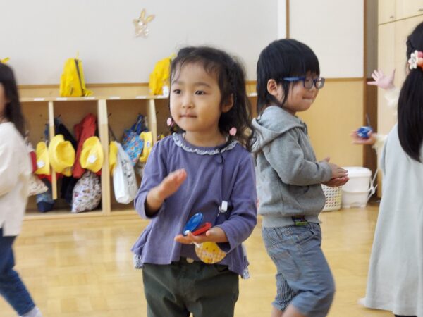 満3歳さん、年少さんは楽器の活動をしましたよ☆カスタネットに挑戦しました!