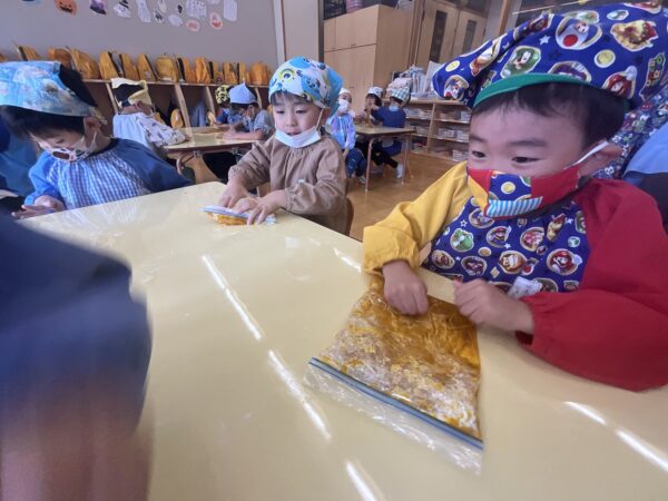 年長さんはクッキングをしました!おいしくできた『かぼちゃもち』は、幼稚園のみんなでいただきましたよ♡
