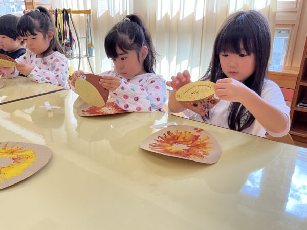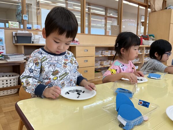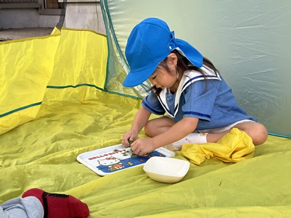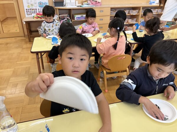 2学期に入り運動会やお店屋さんごっこに向けて学年での活動が増えましたが、帰りの会には必ずクラスで集まるので、満3歳で入園したお友だちに優しくする年中さんや年長さんの姿がしばしば見られています♡また、各学年での活動を手を挙げてお互いに発表するなど、みんなの前で大きな声で発表することもありますが1学期よりも手を挙げて発表してくれるお友だちが多くなり、とても嬉しいです♪