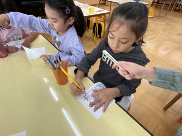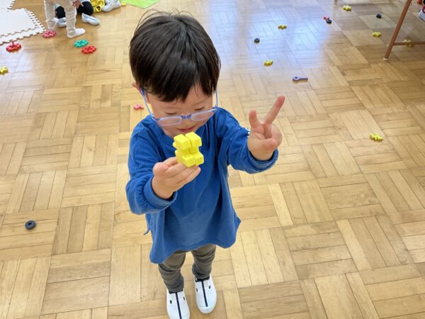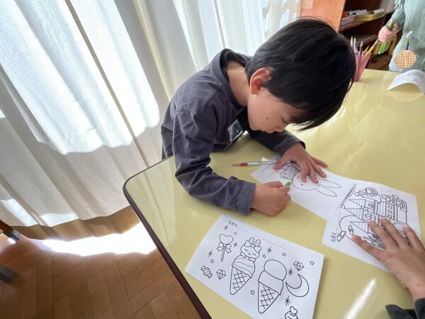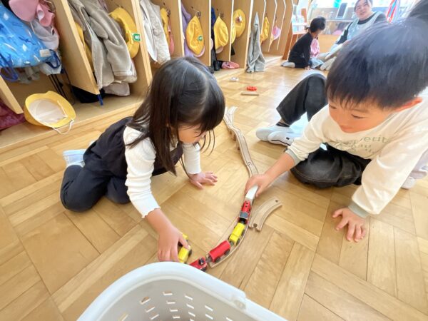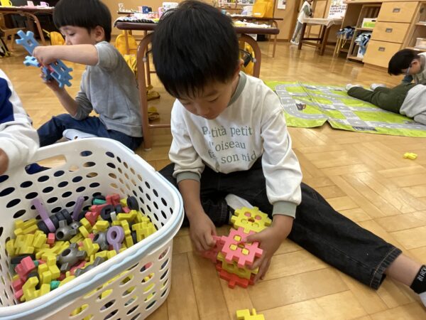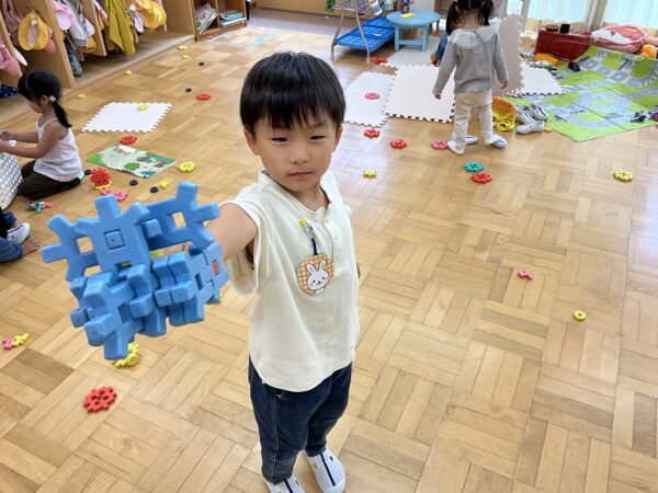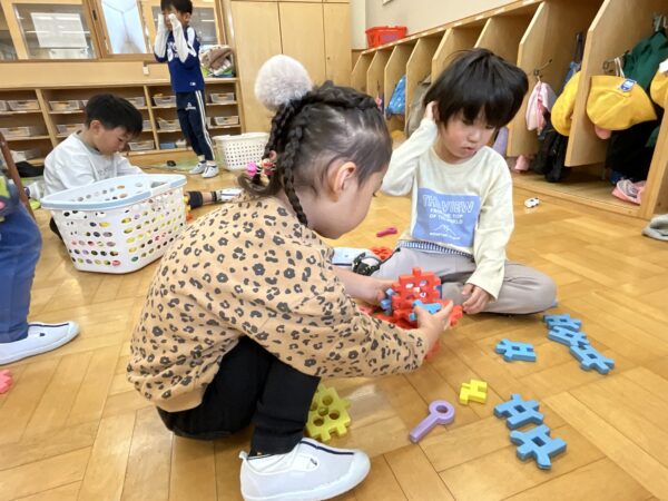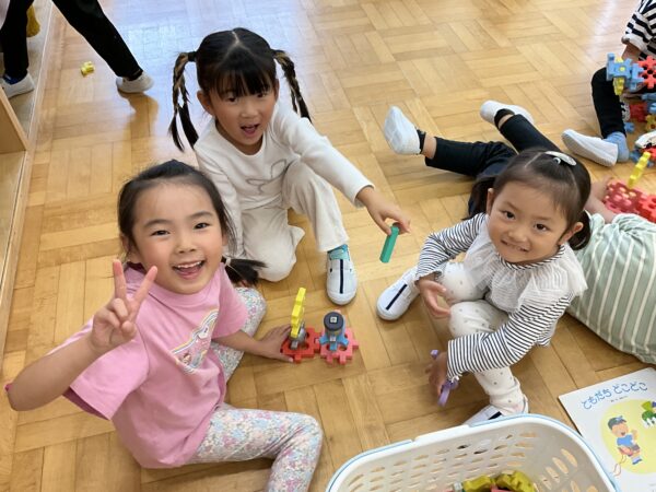 いつも学年関係なく仲良く遊んでいます♪ブロックで作ったものを「見てー!」と嬉しそうに見せてくれたり、「上手に塗れたよー!」と塗り絵を見せてくれる子どもたちです♡