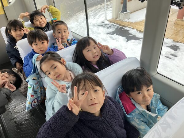 朝から雪が降り積もり、ウキウキワクワクしている様子の子どもたちです。