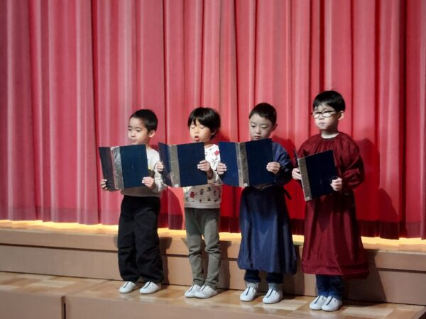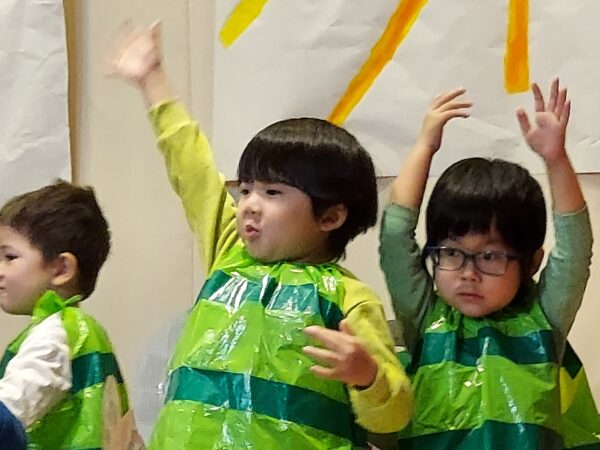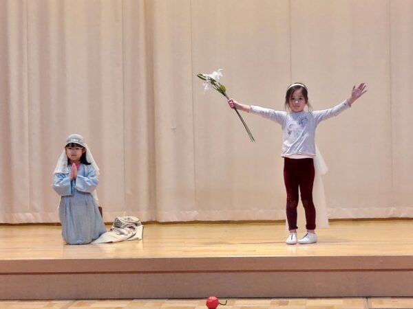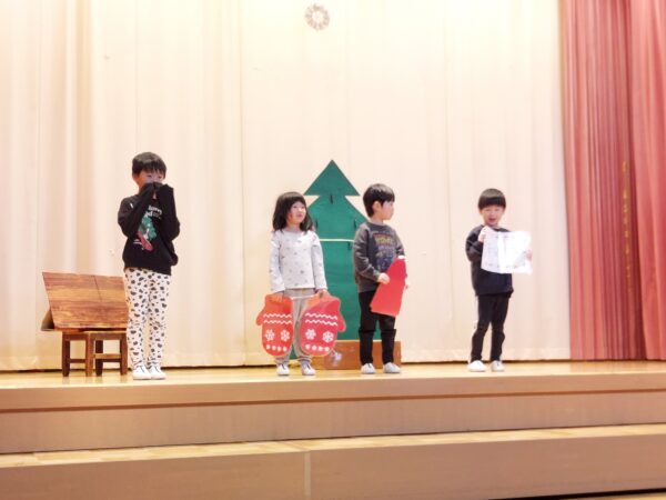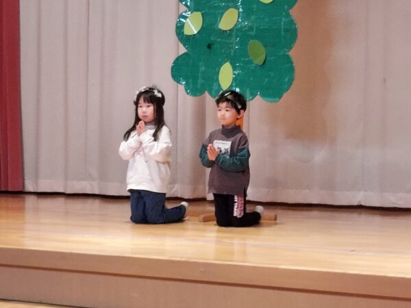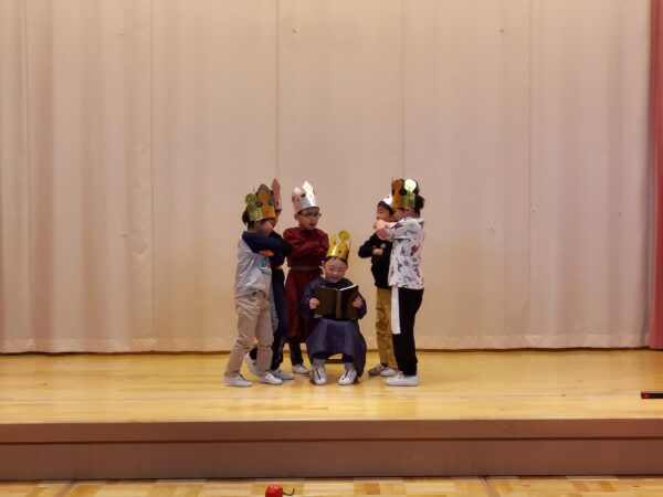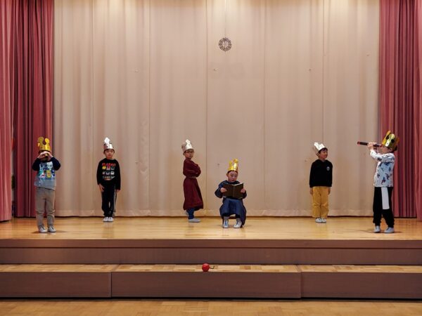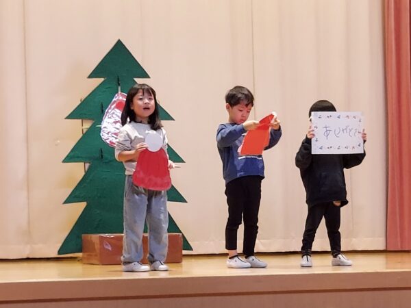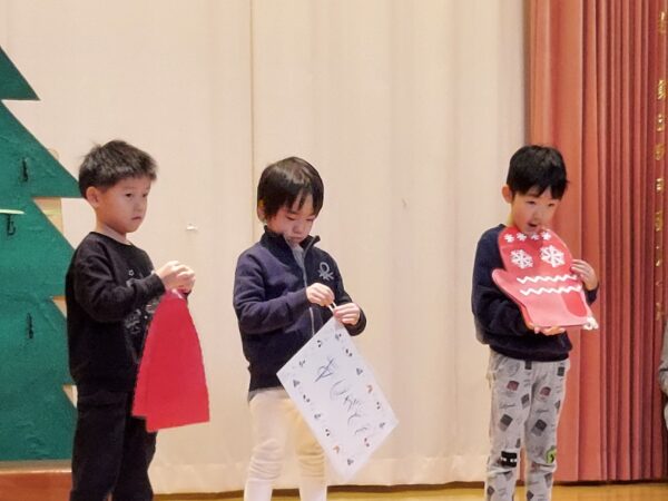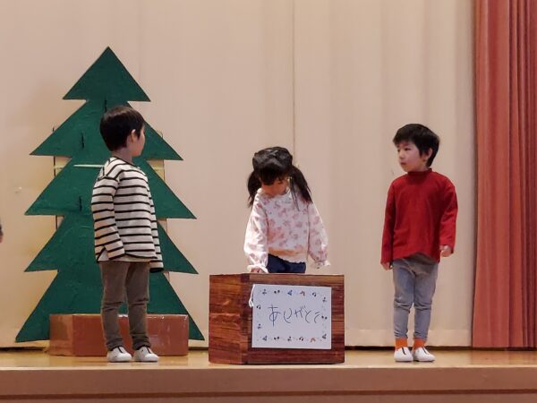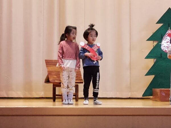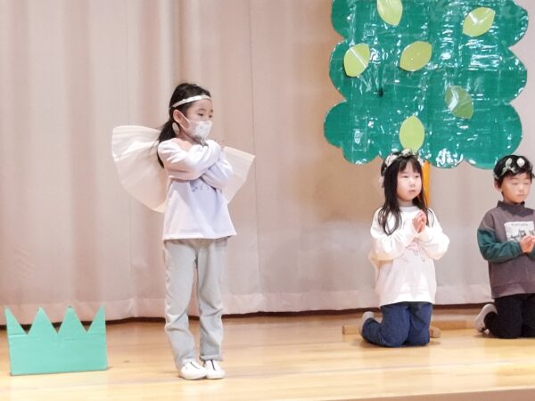 いよいよ明日はクリスマスお祝い会の総練習です♪総練習を明日に控え、今日は他の学年のお友だちの劇やオペレッタを見合いっこしていた子どもたち☆子どもたちからは、「〇〇ちゃん、上手だった!」「みんな可愛かった~♡」「楽しかった!」「格好良かったよ!」と素敵な言葉がたくさん聞こえてきましたよ!お互いに良い刺激を受けながら、明日の総練習もみんなで頑張りましょうね♡