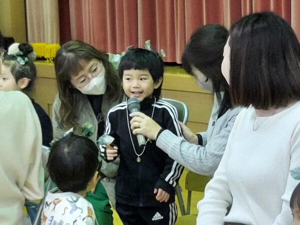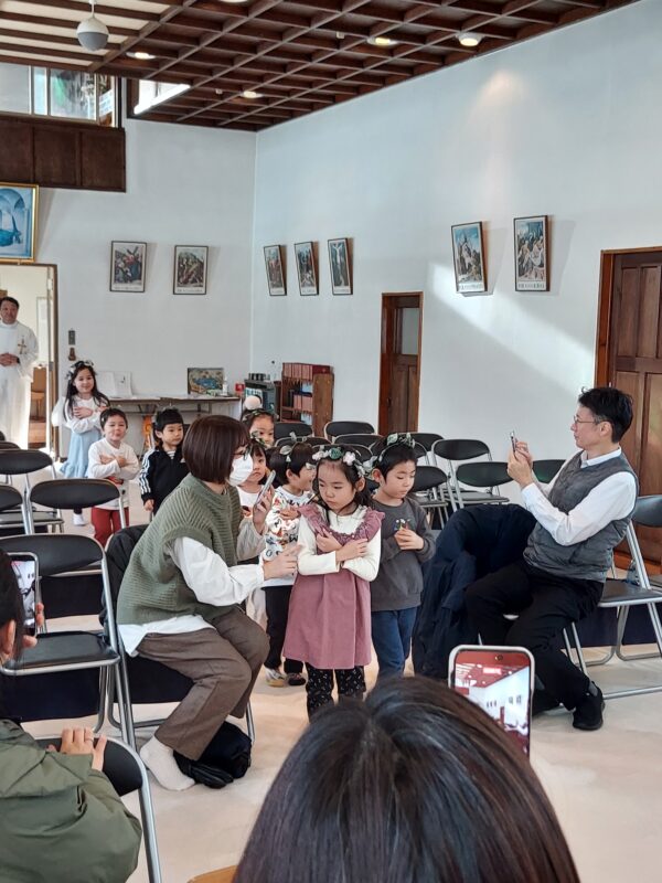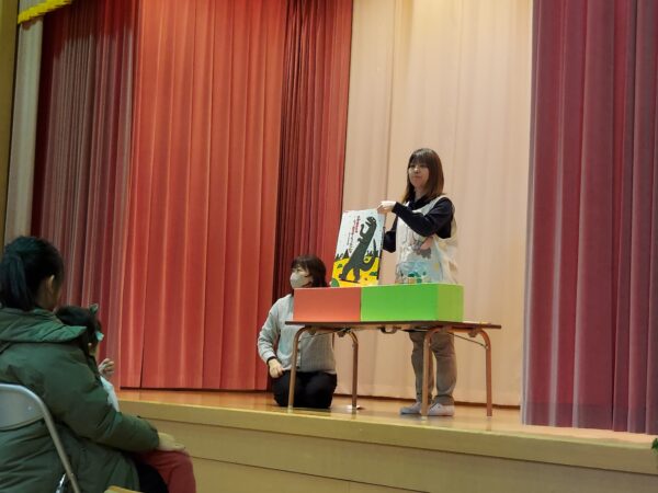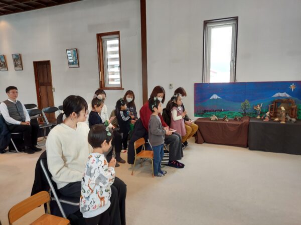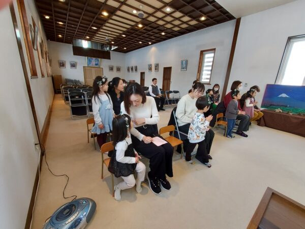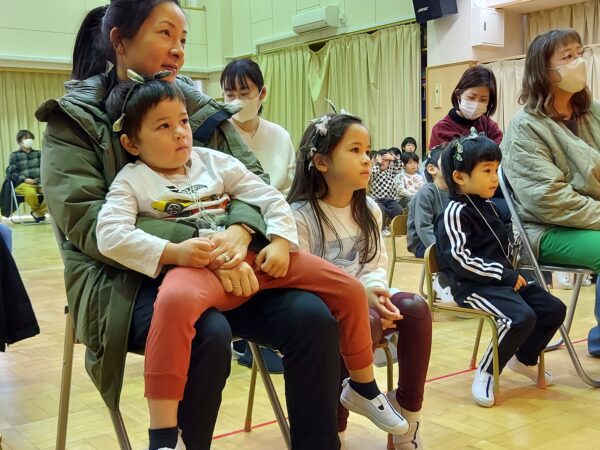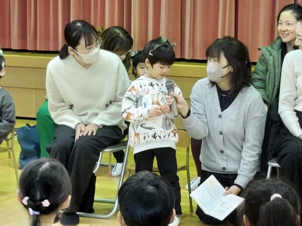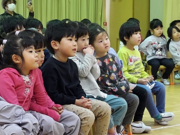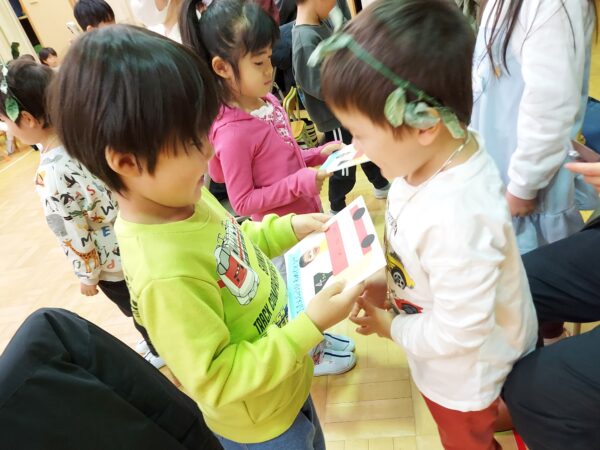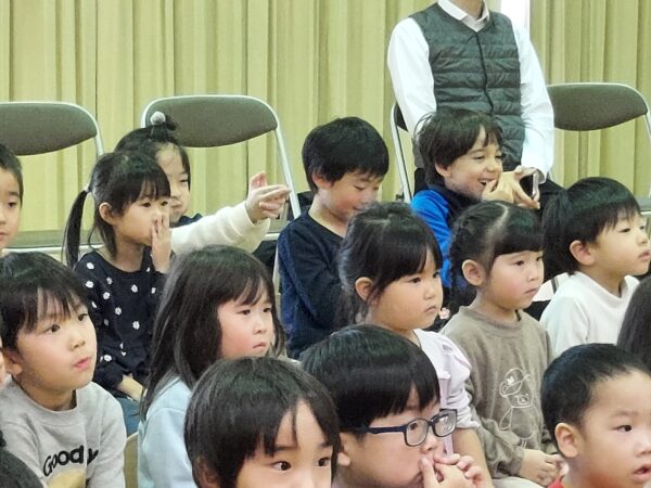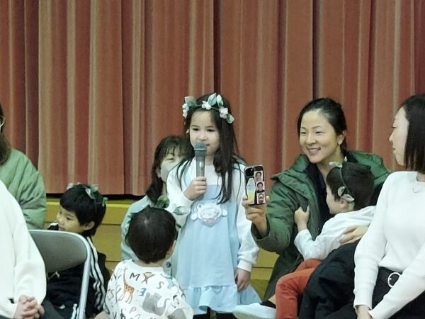 教会でのお祈りや、ホールでのインタビューなど、とっても立派な姿を見せてくれたお誕生児のお友だちでした♪今回の先生からのプレゼントは大型絵本のお話しでしたよ☆ちょっぴり長いお話しでしたが、真剣に聞くことができました!
