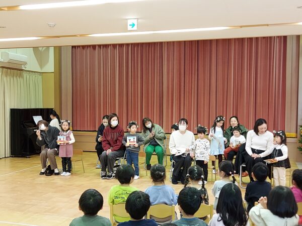 12月生まれのお誕生会が行われました。たくさんのお友だちがお誕生日のお祝いをしましたよ!