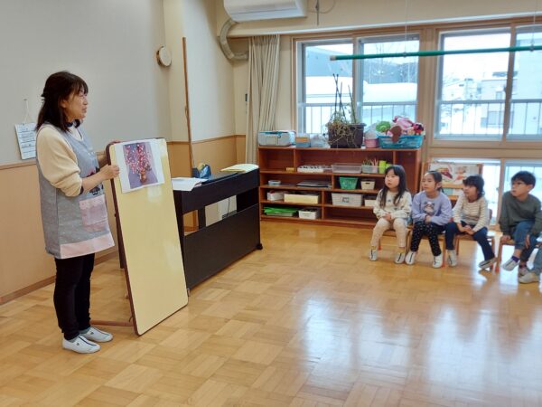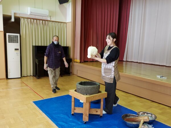 各お部屋では、もち米とお米の違いについてや、鏡もちについてなど、もちつきについてのお話しを聞きました♪
