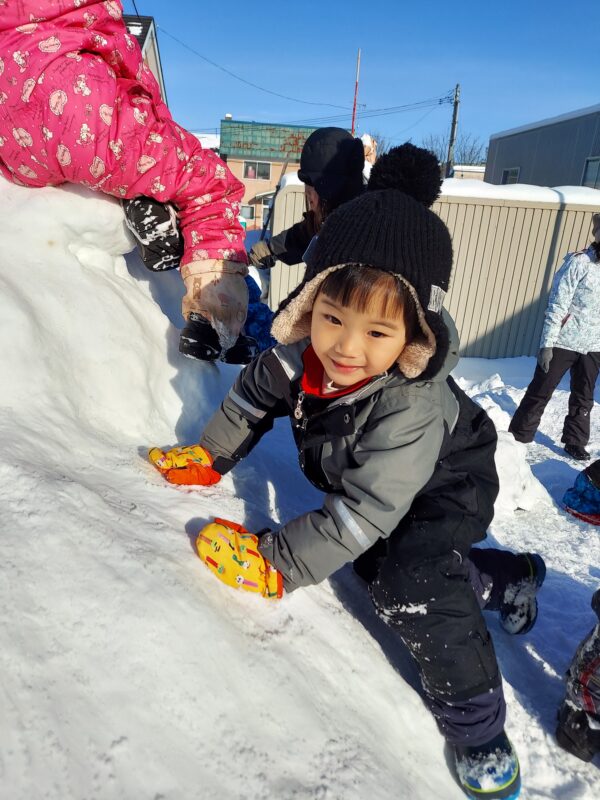 行事が盛り沢山だった2学期も終業日を迎えました。そんな今日は、朝からみんなで雪遊びを楽しみましたよ!