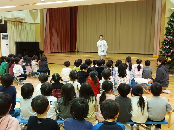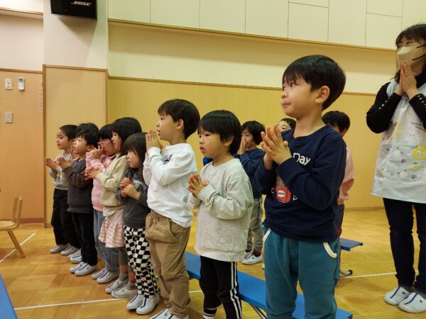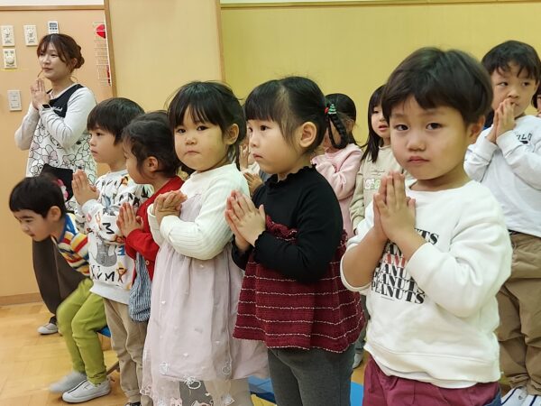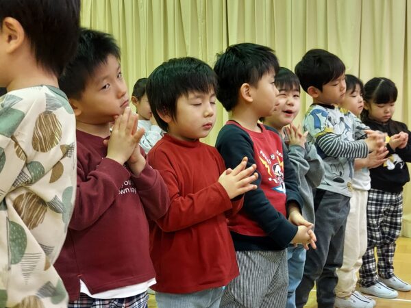 雪遊びを思う存分楽しんだ後は、ホールに集まって終業式をしました♪お話を聞くのも、お祈りもとっても上手になった子どもたちです。明日から冬休みに入りますが、また3学期も元気いっぱいのみんなに会えるのを楽しみにしています☆