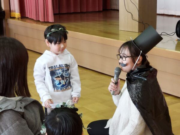 今日の先生たちからのプレゼントは・・・シルエット博士が来てくれて、みんなで影のクイズを楽しみました!久しぶりに来てくれた、シルエット博士にみんなも大喜びでしたよ♡
