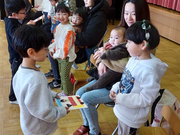 1月生まれのお誕生会を行いました♪お家の方や、お友だち、先生たちに見守られながら、また一つ大きくなったことのお祝いをしましたよ!