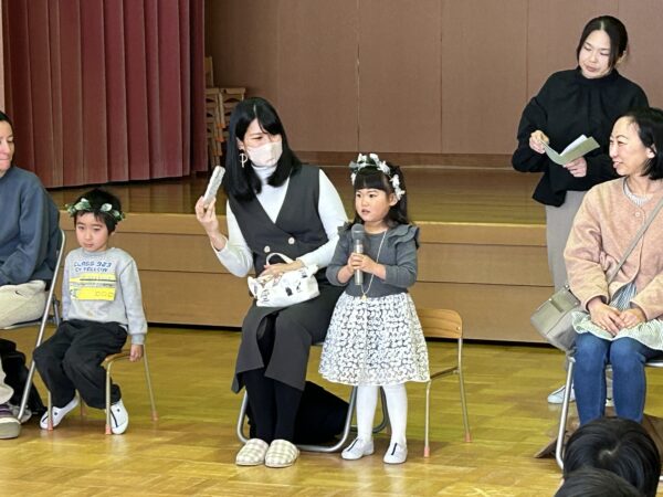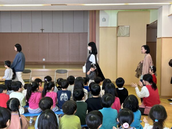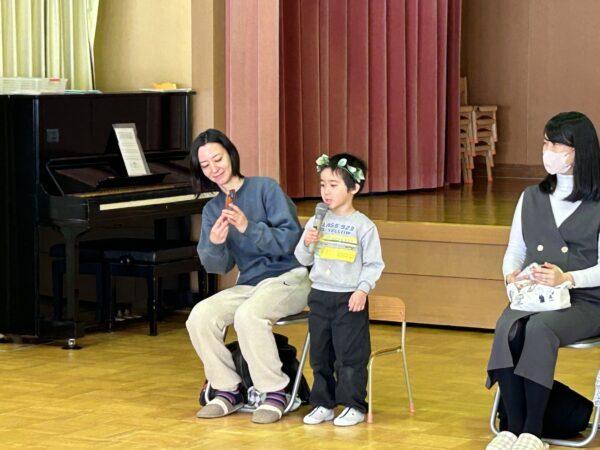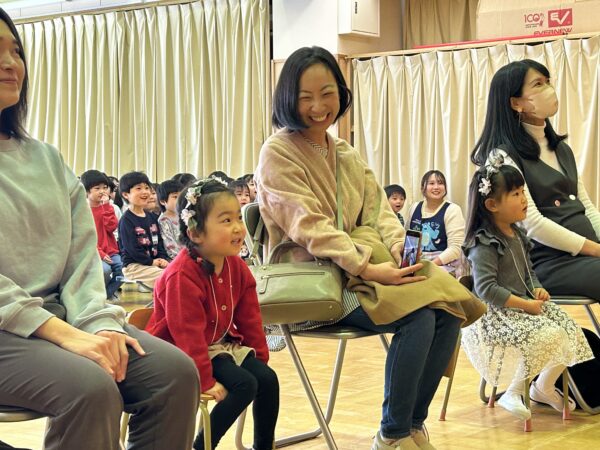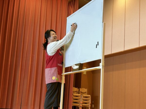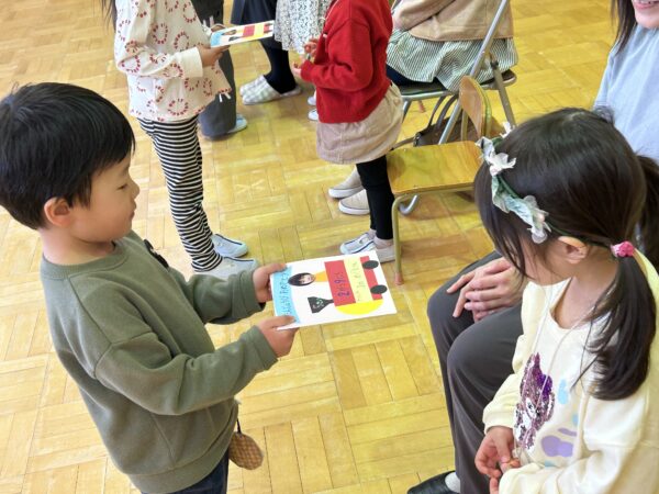 ホールではたくさんのお友だちがお祝いをしてくれましたよ♪そして、今月の先生たちからのプレゼントは『お絵描きクイズ』でした!みんな何の絵かを当てるのがとっても上手でしたね♡