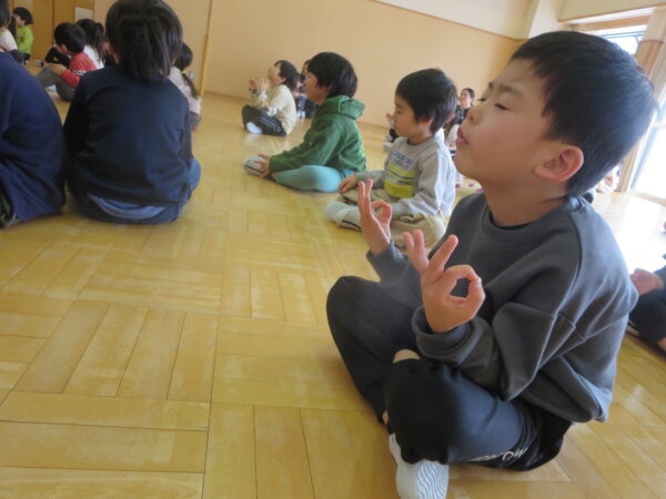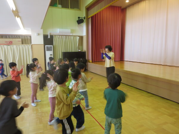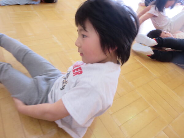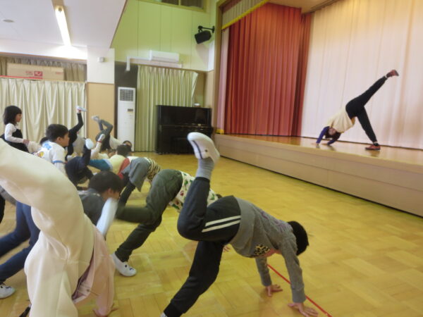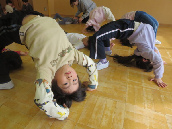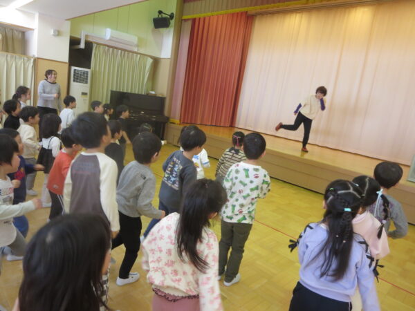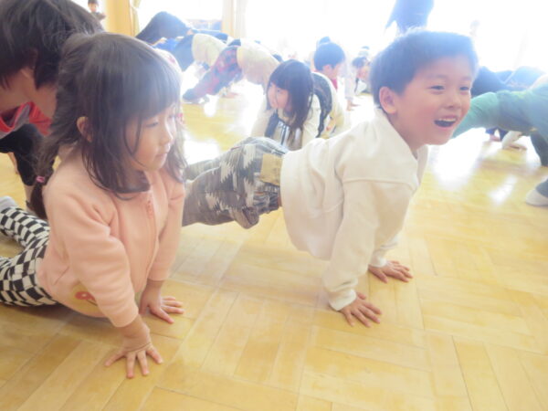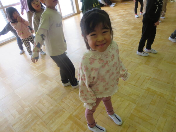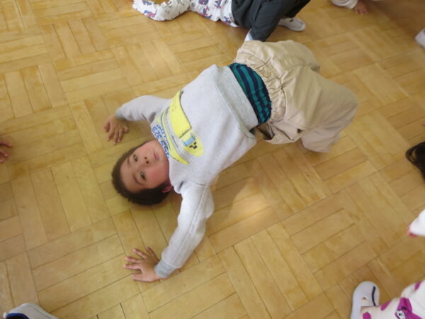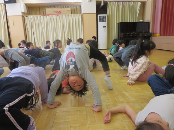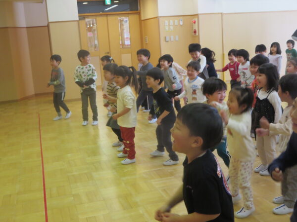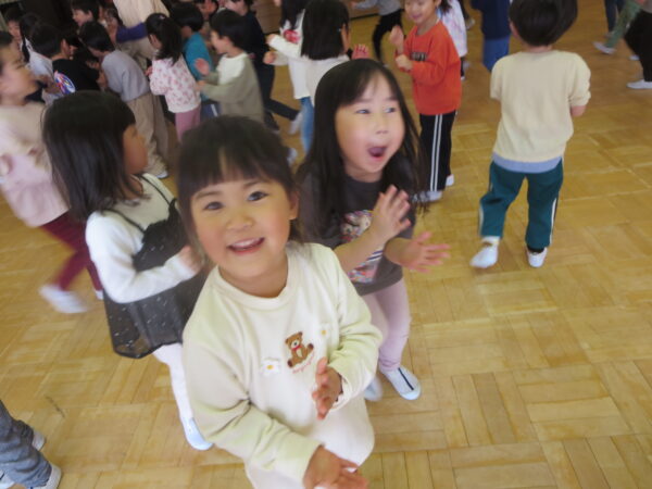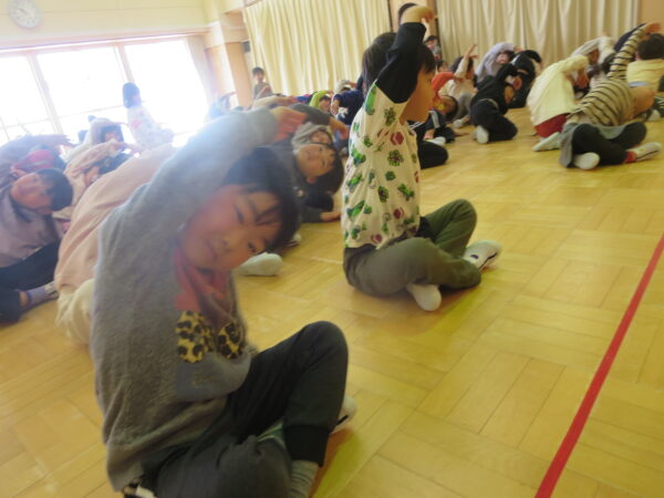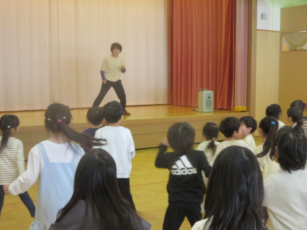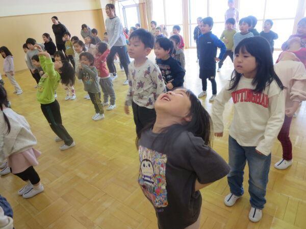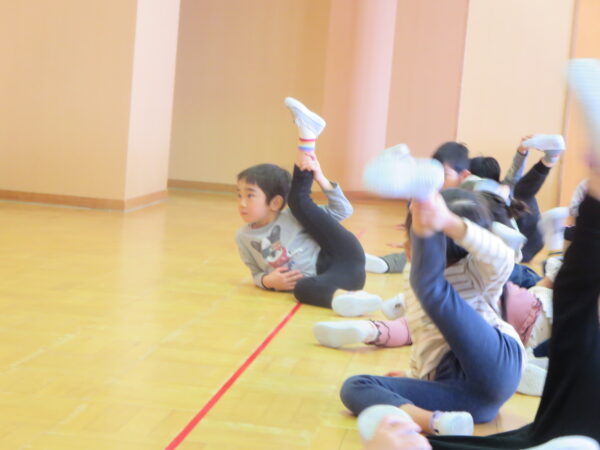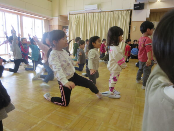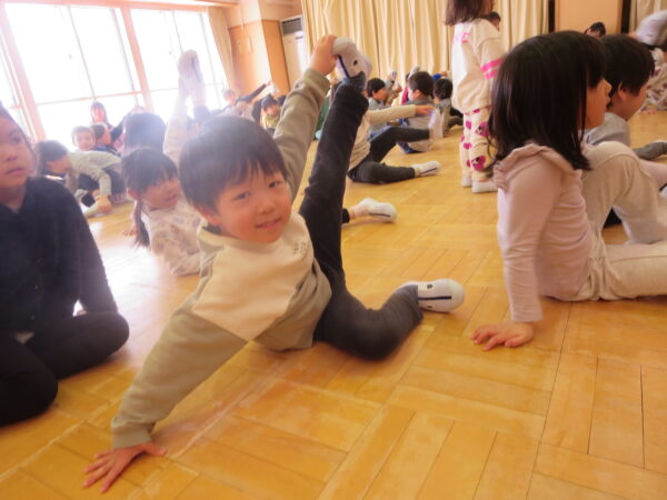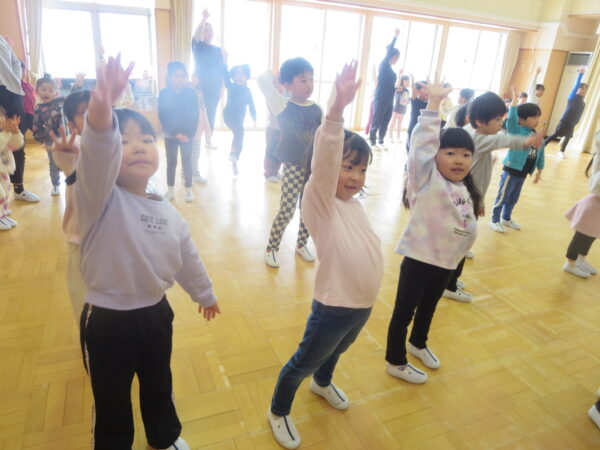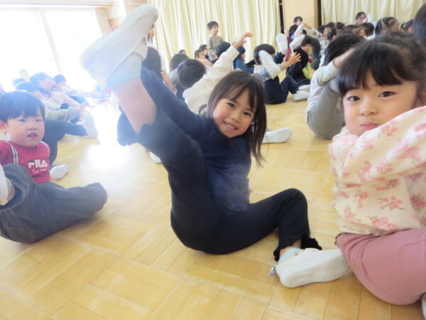 今年度最後のエアロビでした。朝から楽しみにしていた子どもたち♡守山先生がステージにやってくると音楽に合わせてノリノリで身体を動かし、笑顔いっぱいでした♪