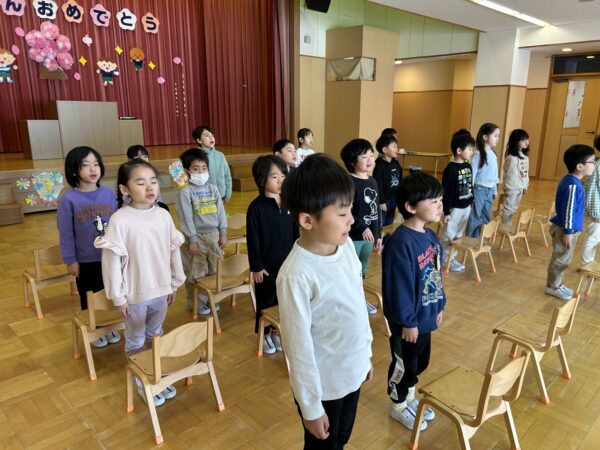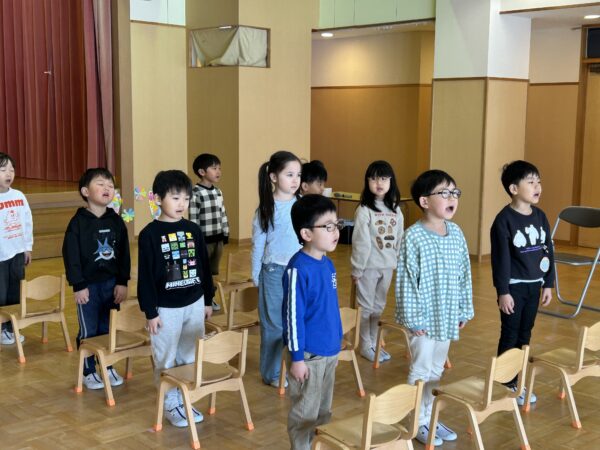 年長さんは卒園式の練習をしました♪来週の総練習に向けて、準備ばっちりな年長さんでしたよ☆