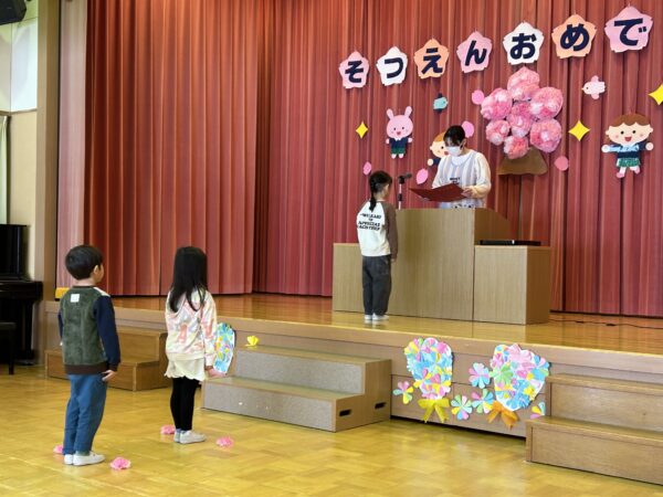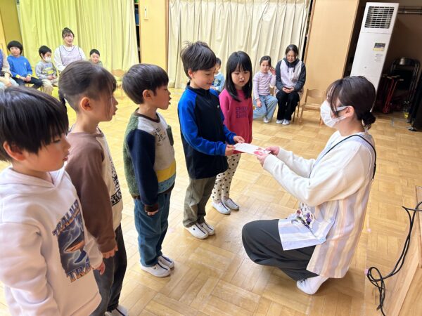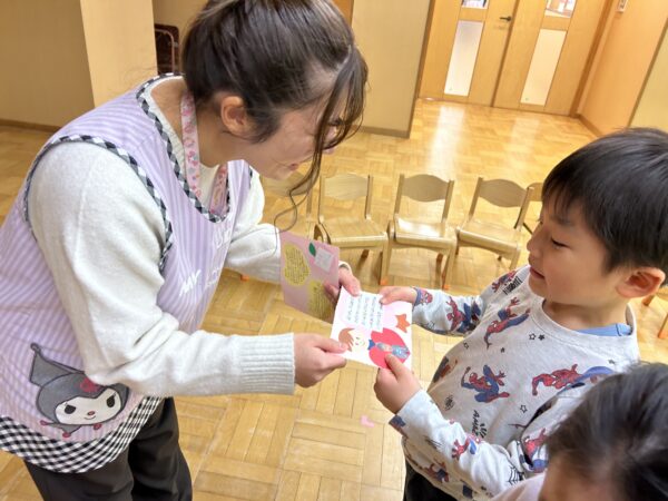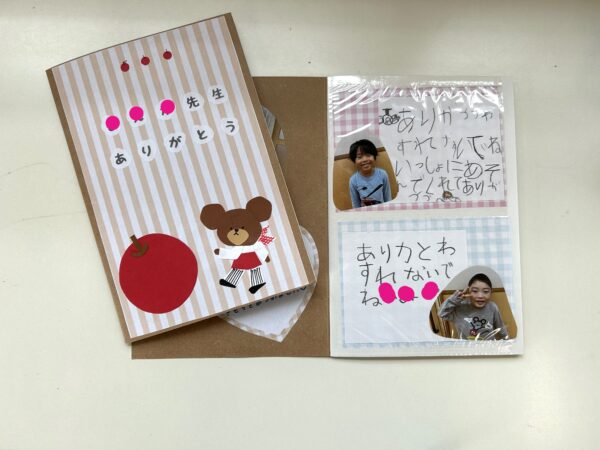 最後に先生たちからもメッセージ付きのカードをもらい、嬉しそうな年長さんでした♪