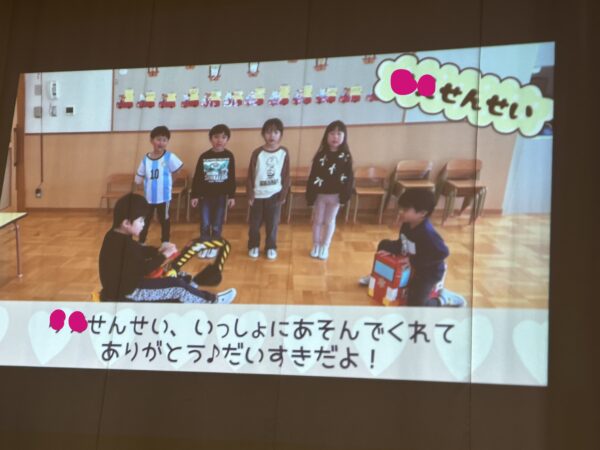ホールでのサプライズ以外にも、幼稚園のいろんな先生たちにありがとうを伝えました♪