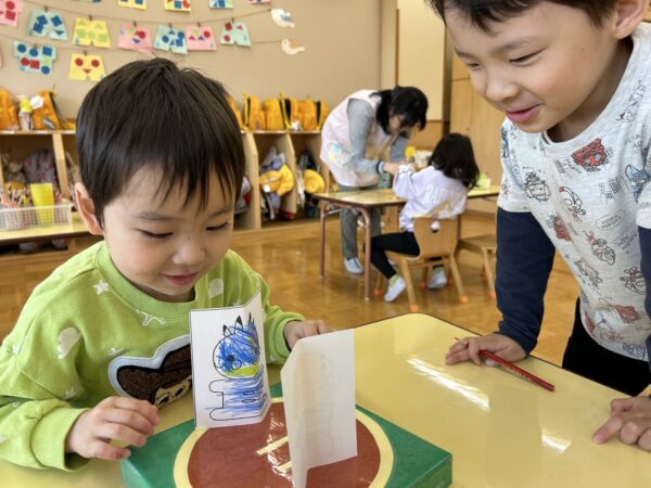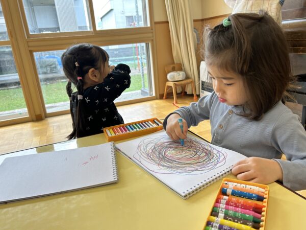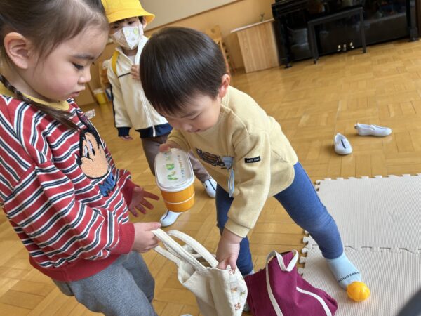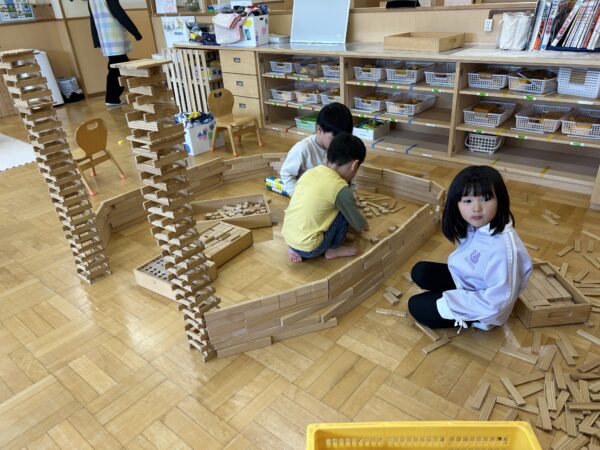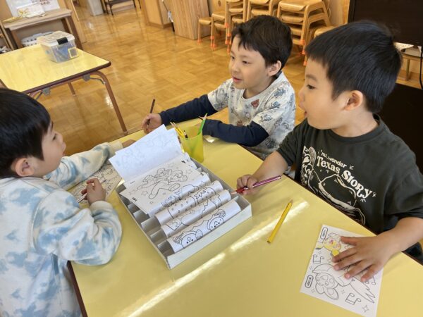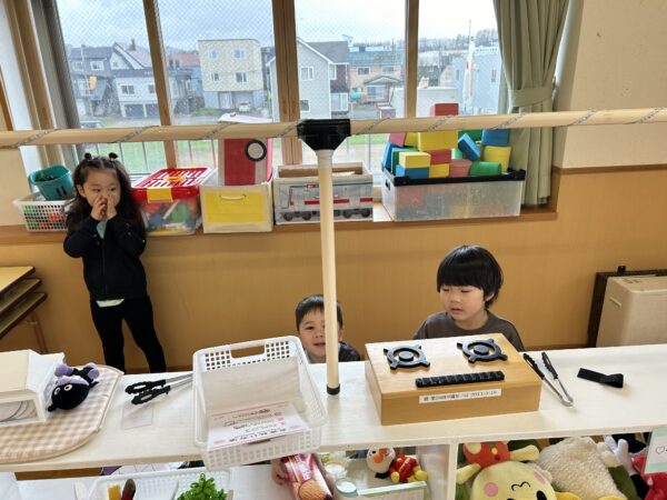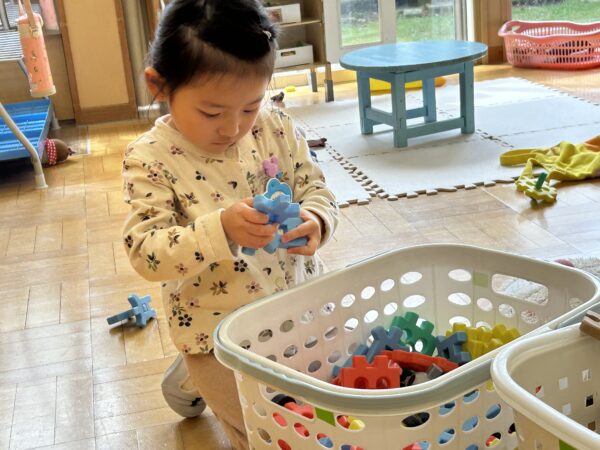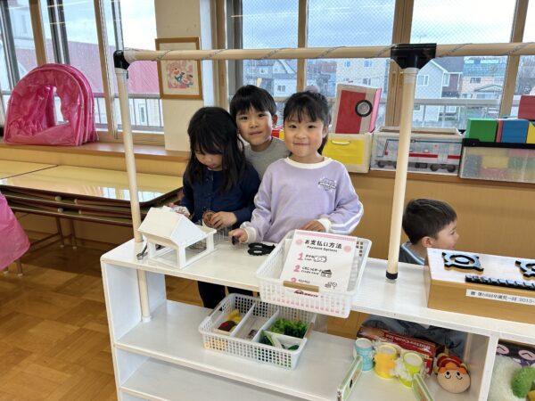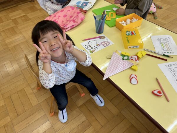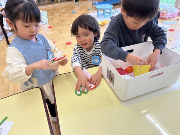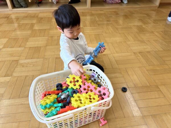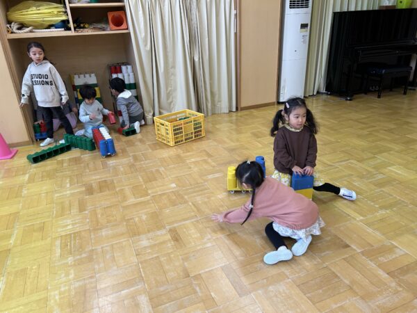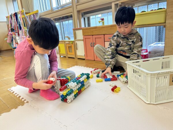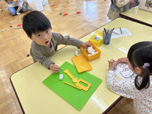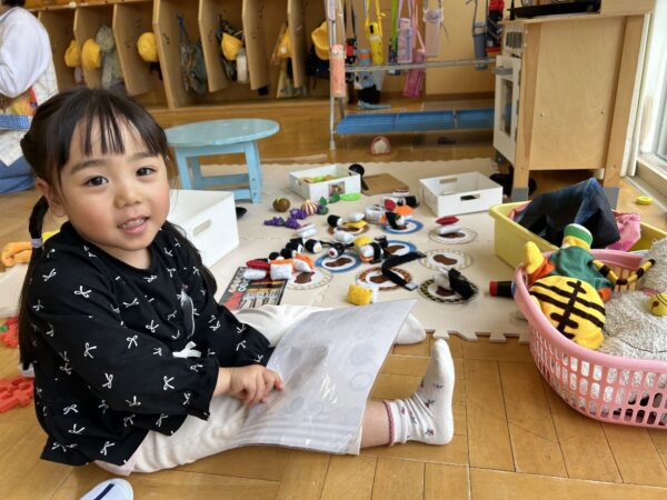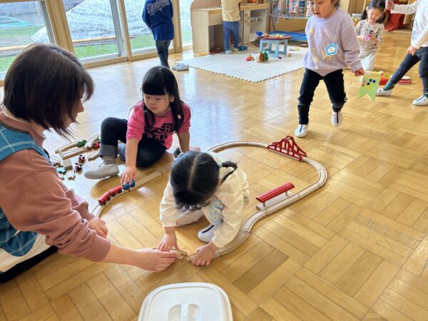 年長、年中のお友だちがすきなとこデーの時間を満喫している間、年少の子どもたちも年少のお部屋で、自由遊びを満喫していました☺