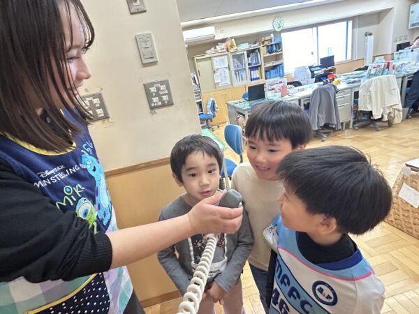 お片付けのお知らせをするのは年長のお兄さんたちです♪上手にお知らせすることが出来ました♪