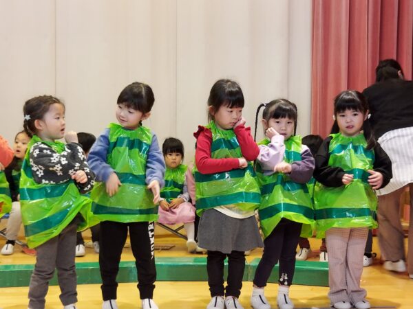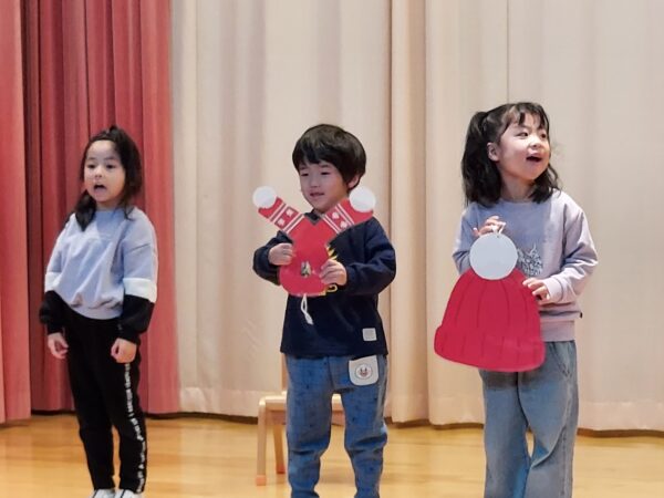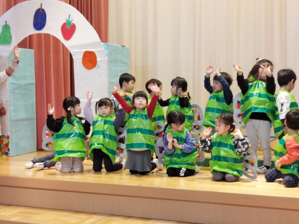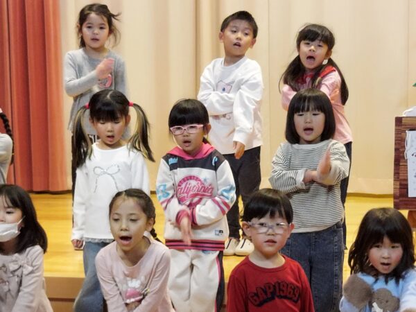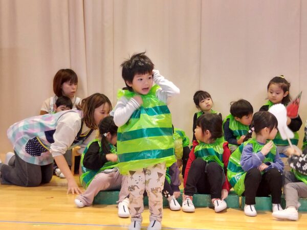 年中さんは昨日の練習の様子です♬大きなホールでの練習はちょっぴりドキドキしながらも、覚えたセリフを一生懸命言う姿や、お友だちと一緒に楽しむ姿がありました☆最後の『ありがとうの花』のお歌もとっても上手な年中さんです!