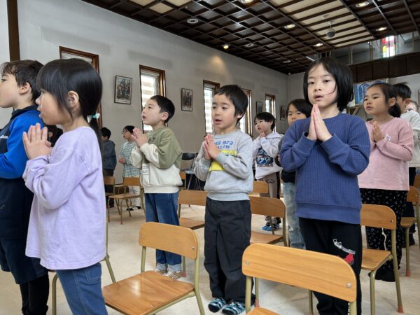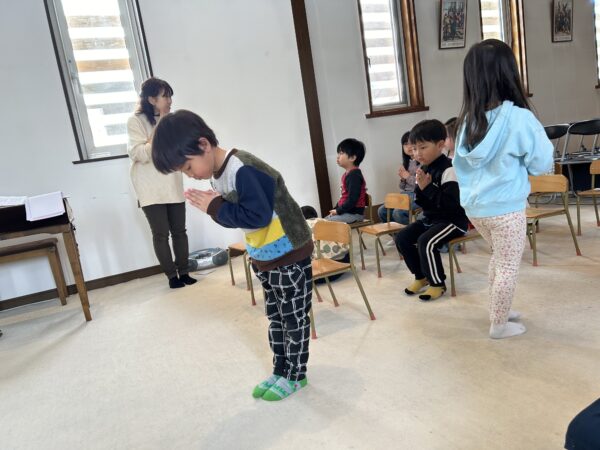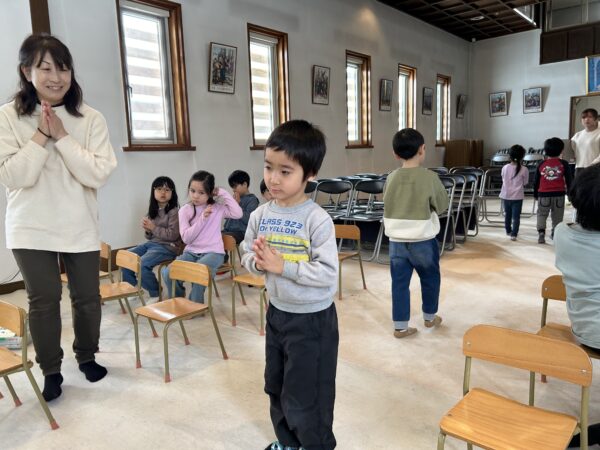 教会では「みことばの祭儀」の練習をしました!覚える言葉がたくさんある「みことばの祭儀」ですが、みんな一生懸命、真剣に取り組んでいる姿は、さすが年長さんでした☆