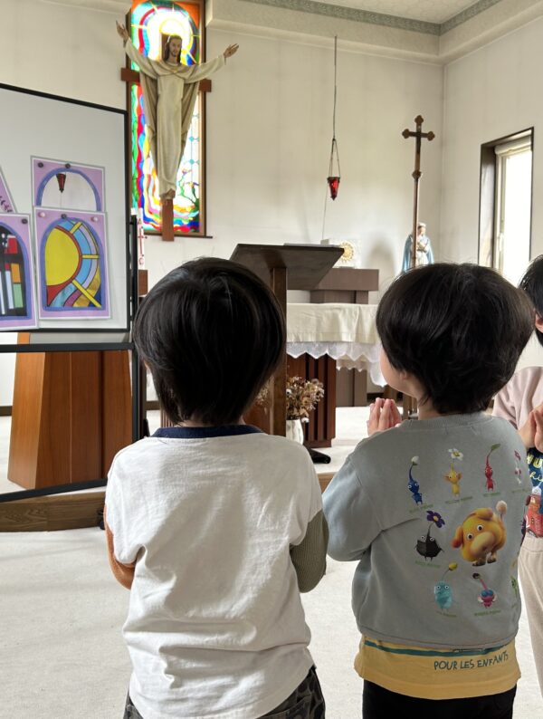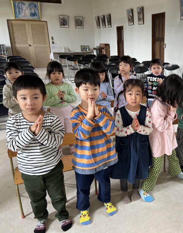 4月生まれのお誕生会 投稿日: 2026年4月24日 kutchanカテゴリー: ブログ 今日は、4月生まれのお友だちのお誕生会が行われました。 教会での祝福☆ ☆お祈り☆ ☆祝福☆ ☆メダイのプレゼント☆ ホールで全園児でのお誕生会☆ ☆インタビュー☆ 先生からの楽しいプレゼントは、『形クイズ』でした♡ 7名のお友だち、お誕生日おめでとうございます♪