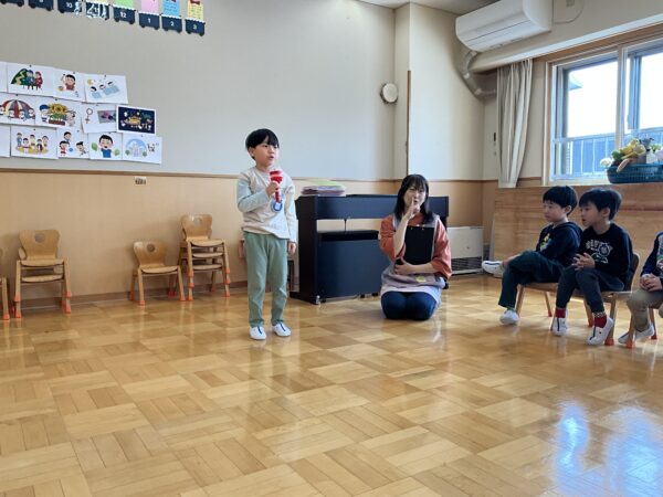 お祈りの後は、先生たちからの出し物タイム♪『いたずらサンタ』というパネルシアターをしてくれましたよ!みんな大盛り上がりでした☆