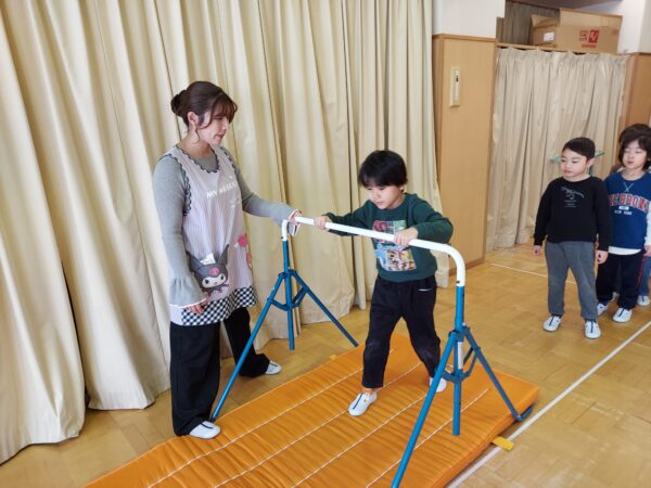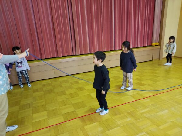 朝の自由遊びでは、ホールで鉄棒や縄跳び、鬼ごっこをするお友だちがたくさんいました!ふじオリンピックに向けて、練習するお友だちもいましたよ☆