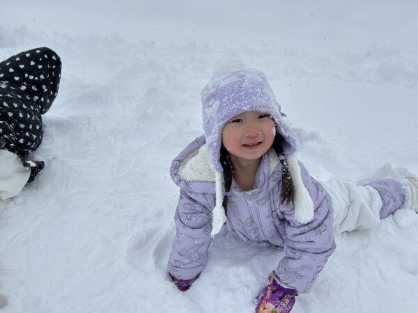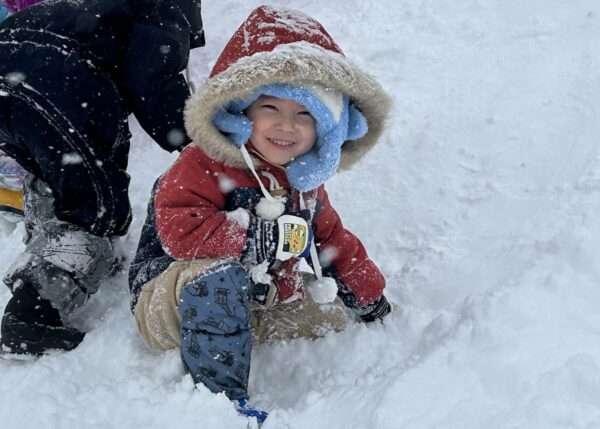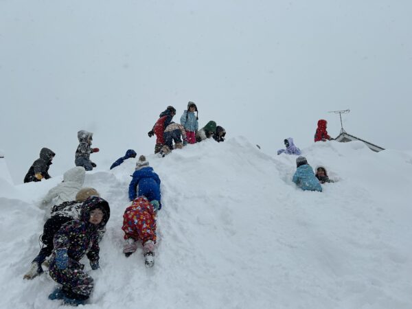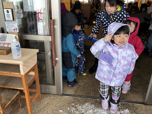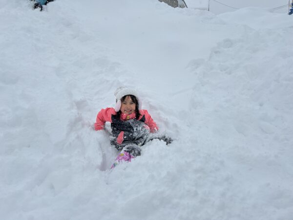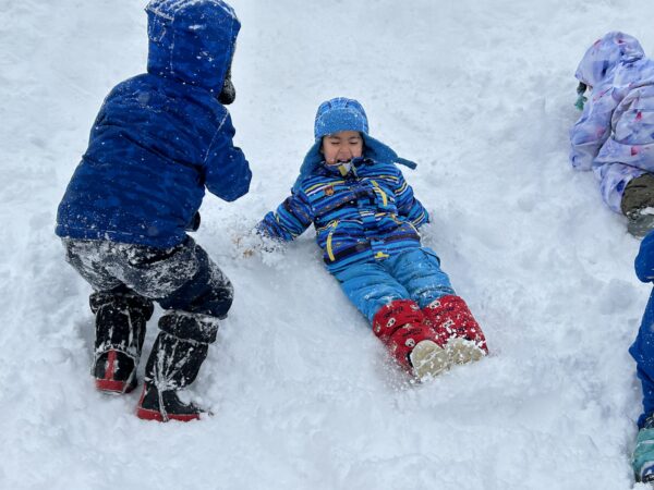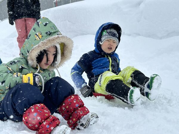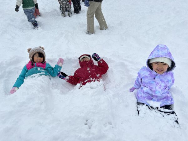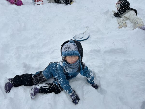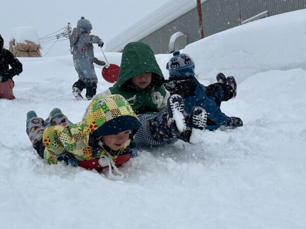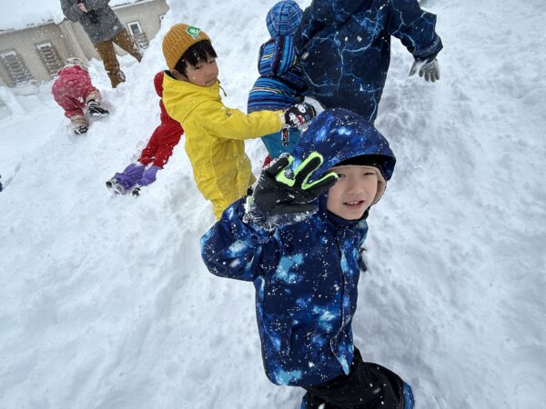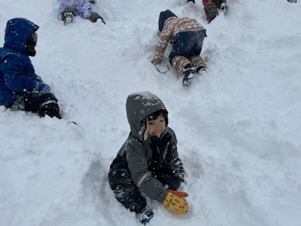 雪遊びでは、雪山に登ったり、そり滑りをしたり、ふわふわな雪を思う存分楽しんでいた子どもたちでした☆
